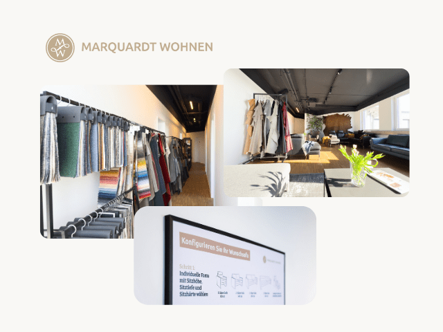 2017 gründete ich Marquardt Wohnen. Im Mittelpunkt steht der Mensch und das gute sitzen und liegen. Was mit meiner Arbeit für QVC begann, führte 2019 zur Eröffnung einer kleinen Ausstellung in Gremberghoven: ein Ort, an dem Wünsche gehört und passende Lösungen gefunden werden.