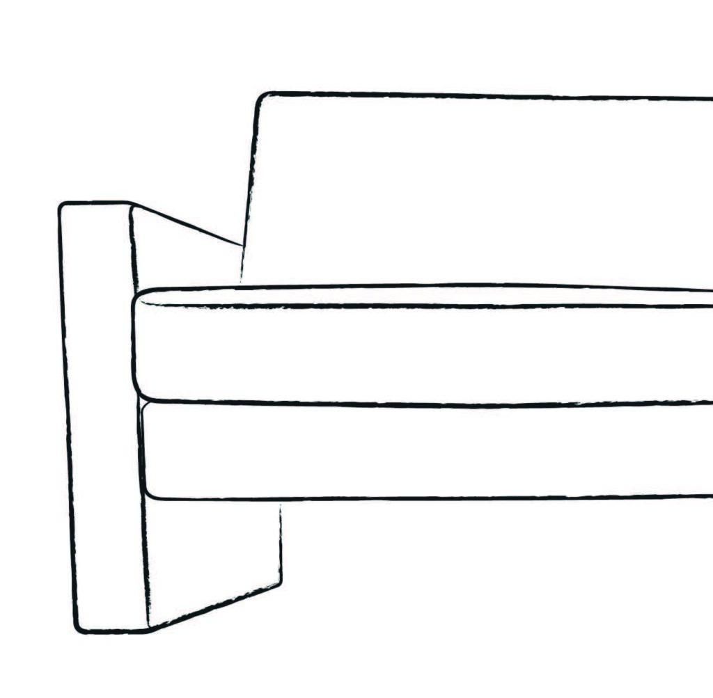 Die durchgehende Sitzmatte aus hochwertigem Kaltschaum sorgt für gleichmäßigen Sitzkomfort. Der bewusst dick gepolsterte Rücken und die breiten Armlehnen verstärken den gemütlichen Charakter.